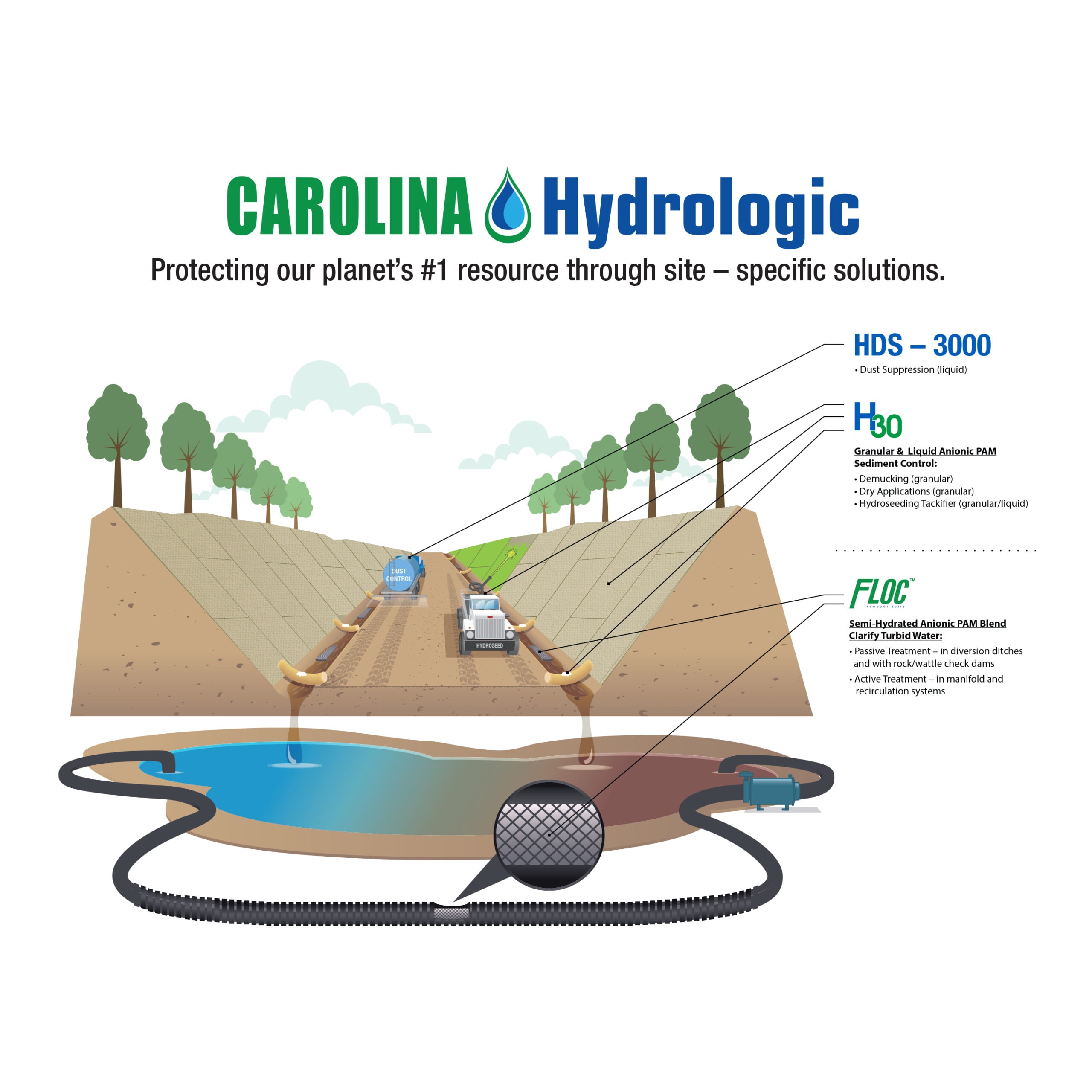 Carolina Hydrologic is the master distributor of HydroLoc products, soil amendments designed to more effectively manage resources by reducing water requirements, reducing the loss of nutrients, stabilizing soil, and reducing dust and erosion. HydroLoc products represent a new generation of polyacrylamide based technology, providing state of the art solutions to professional contractors, growers, and landscapers.